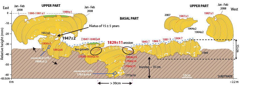 Coral microatolls are massive corals living in the intertidal zone (area within the tidal range). Already studied in the Pacific and Indian oceans, the microatoll tool has enabled us to advance our understanding of the climate and functioning of major subduction faults.