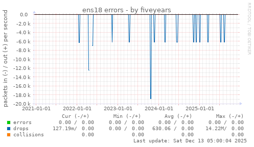 This graph shows the amount of errors, packet drops, and collisions on the ens18 network interface.