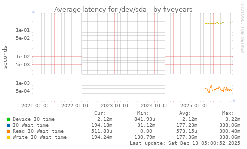 Write IO Wait time avgwrwait gauge 0:3 Average wait time for a write I/O from request start to finish (includes queue times et al)